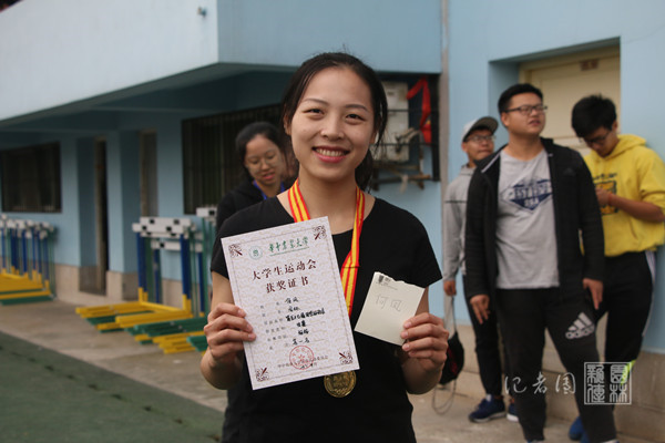 说起标枪,何凤滔滔不绝,仔细向大家解说着每个动作要领与方法技巧,清晰地分析出自己刚才的失误之处,“标枪看似简单,其实很需要技巧的,并不仅仅是扔出去那么简单。”她笑着说,语气里充满了对标枪的喜爱。据了解,何凤曾荣获前两届校运会女子标枪冠军,也曾在跨栏等各项比赛中取得优异名次,还曾数次参与国家级及省级体育赛事。丰富的参赛经验练就了她一身过硬本领和不慌不乱的处事风格。
