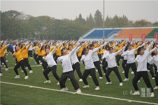 伴着熟悉的韵律,我院广播操队伍开始表演。他们身着白色服装,目光坚定,动作整齐划一。抬手、踢腿,举手投足充满朝气;弯腰、屈膝,一举一动尽显青春风采。据悉,为了达到比赛的标准,他们在我院组织部和女生部的带领下进行了十余天的训练。