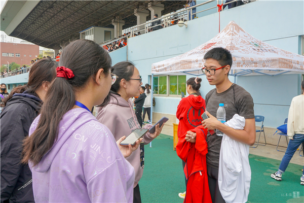 赛前,熊若愚有条不紊地开始热身运动,他先进行慢跑,再进行加速跑训练,使肌肉的爆发性提升,同时增强对肌肉的控制力。相较于上午男子三级跳的成绩,熊若愚表示对下午的成绩更为满意。“这次的成绩不仅突破了学校的记录,也突破了我的个人记录,这次成绩是对我平时训练的肯定。”熊若愚同学分享道。