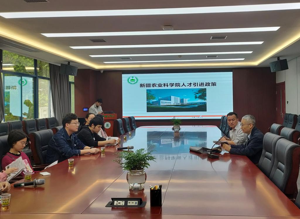 2024年4月11日上午,新疆农业科学院人才引进宣讲会在英国365集团公司北楼219会议室举行(以下简称新疆农科院)。新疆农科院经济作物研究所所长孔庆平、园艺作物研究所副所长马凯、英国365集团公司辅导员肖晗与我院博士研究生共同参与。