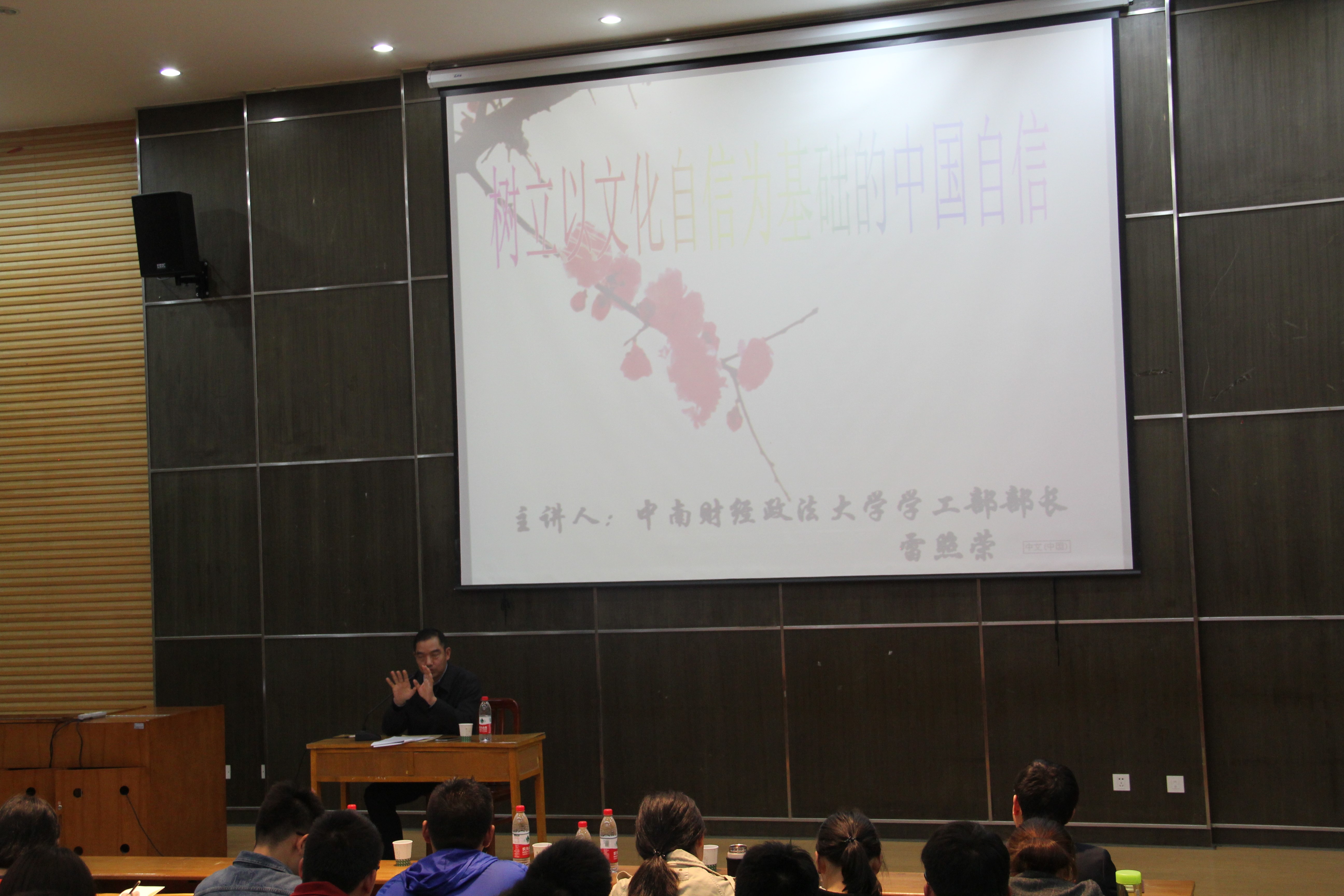 (作者:石娇星 金帅)3月30日晚,中南财经政法大学学工部部长雷照荣做客园林院“与信仰对话”特色党课,150余名学生党员及入党积极分子听取了以“树立以文化自信为基础的中国自信”为主题的专题报告。