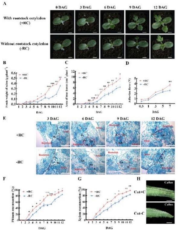 西瓜是世界上重要的园艺作物,嫁接能够提高西瓜的抗逆性、产量和品质,在生产中被广泛使用。西瓜在嫁接操作时不能完全去除砧木子叶,否则嫁接成活率及种苗质量将显著下降,但是砧木子叶如何调控嫁接愈合的机理尚不清楚。