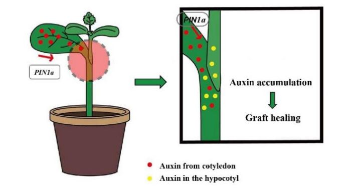 图3. 砧木子叶ClPIN1a调控西瓜嫁接愈合的作用模型