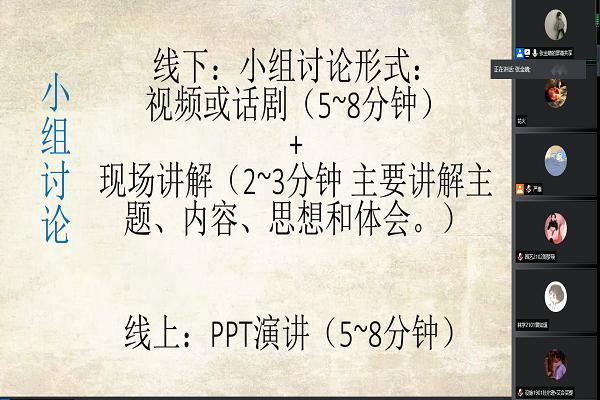 虽然本次会议在线上进行,但这丝毫不减同学们参会的热情。全体成员均参与会议,各组组员也积极进行小组讨论,最后辅导员邬远生也向各位新成员提出了建议。会上各项事宜均进展顺利,本次活动圆满完成。