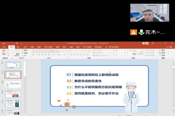 会上,克木讲述了我国当前疫情防控的取得的成果,并深入阐述了我国与西方国家抗疫方式的不同。他表示,我国正处在防疫关键时期,学校也积极响应疫情防控的号召,一直坚持“非必要不外出”的政策,保障学生们的安全。他还强调了清明节期间的安排,建议同学们做好个人防护,非必要不外出,为学校的疫情防控工作贡献自己的力量。