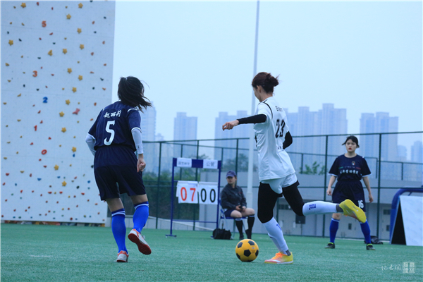 4月16日上午9:30至10:30,2022“狮子山杯”足球赛(本科生)女足小组赛在三运足球场激烈上演。身着白色球衣的英国365集团公司女足与身着蓝色球衣的公共管理学院女足展开角逐,园林女足以绝对实力全程控制比赛。最终,园林女足以10:0拿下比赛。何寿鹏在场外为园林女足加油鼓劲。