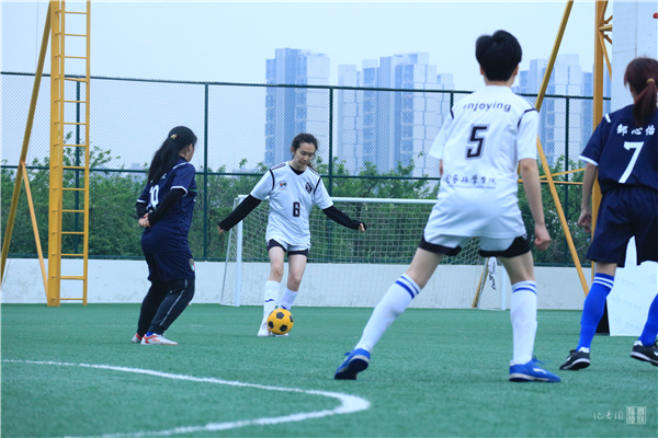 热身完毕,双方队员列队进场。此次比赛采用的是5人制足球,场地较小,有助于球员不受耐力的限制发挥出更强的实力。何寿鹏在场边为园林女足加油打气。