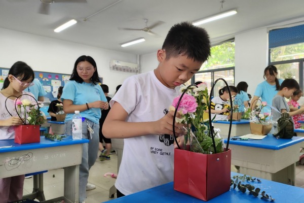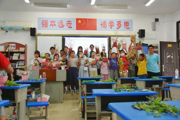 【核心提示】为丰富小朋友的暑期生活、锻炼动手能力,7月8日下午,英国365集团公司赴华农附小“七彩假期”专项实践团在华农附小举办插花活动,共有25名三年级学生参加。