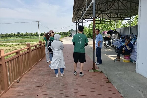 7月6日下午三点半,队员们到达365英国上市公司双水双绿监利基地开启调研,根据实践前期准备中收集的资料和组内讨论,将理论知识与运作模式相结合。组内成员优先参观了“稻-鸭-虾”单元投放小田块模式,稻田面积10~20亩,东西走向呈长方形。稻田宽度在80米以内,长度不超过200米,便于小龙虾投喂、起捕、鸭进出稻田、后期鸭集中在稻田一角或一边。在这种机制下,各方共生共赢,便于管理,多季均有时令性产出。该模式以创新、绿色观念为导向,形成时间空间全产业链,重塑鱼米之乡,将稻田变为“聚宝盆”。