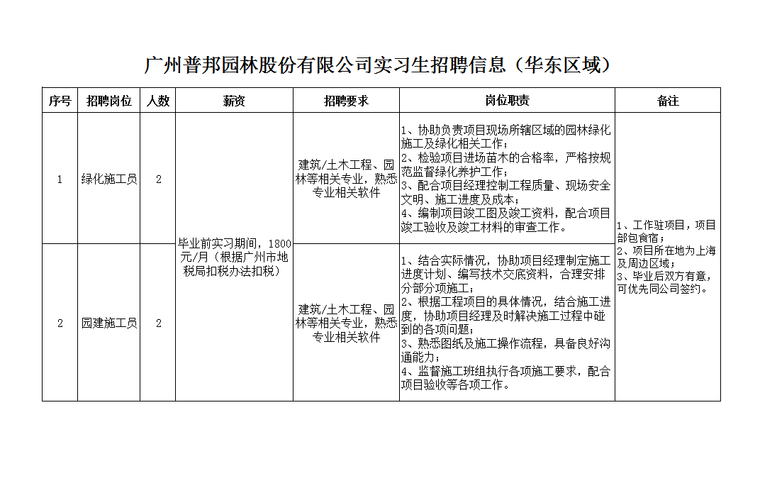 广州普邦园林股份有限公司2020届校园招聘信息
