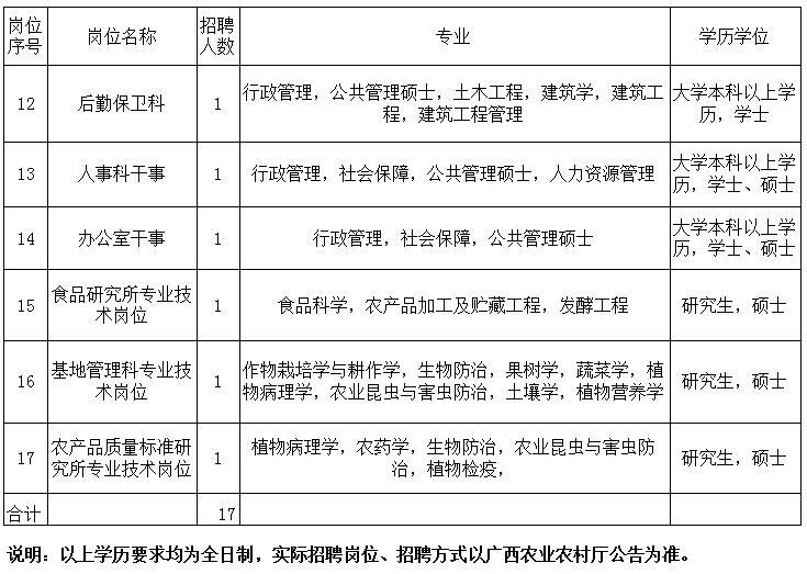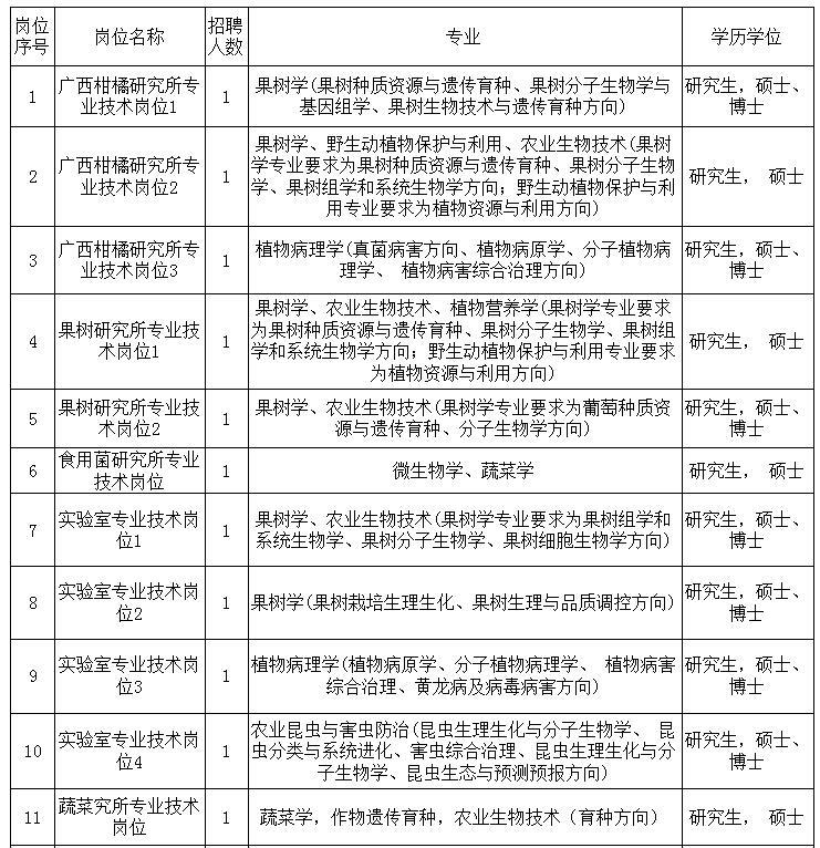 2020年,我院将面向社会招聘部分专业技术人员和行政管理人员,拟招聘信息详见“广西特色作物研究院2020年拟公开招聘工作人员岗位信息表”,最终招聘信息经自治区人社厅备案确认后,将在广西人事考试网(www.gxpta.com.cn)、广西人才网(www. gxrc.com)、广西农业信息网(www.gxny.gov.cn)及广西特色作物研究院网站(www.gxasc.com)发布招聘公告。通讯地址:广西桂林市七星区普陀路40号人事科;咨询电话:13978323112,13978337311;邮箱:gjsrsk@126.com。