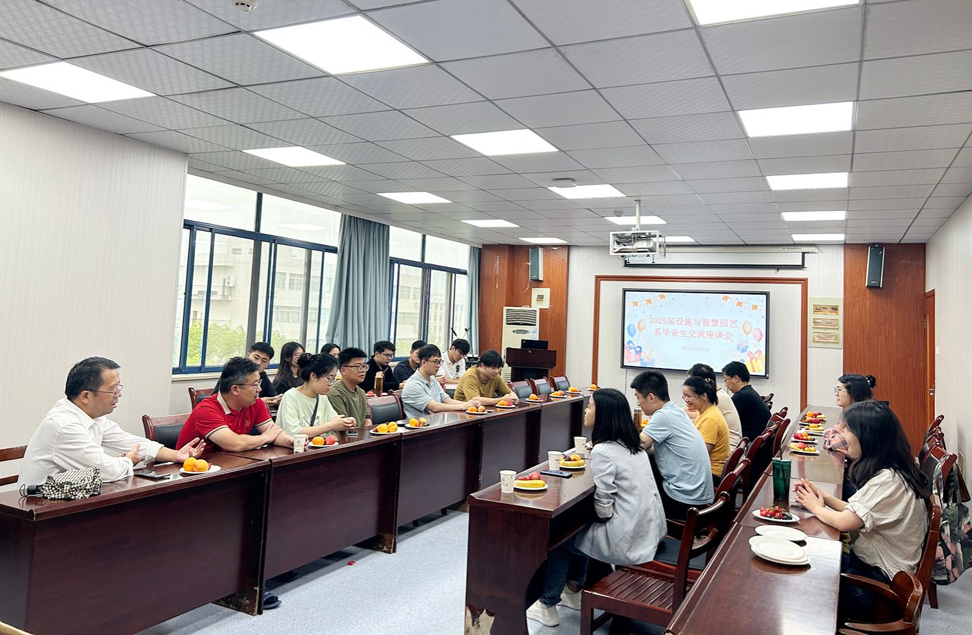 6月9日上午,园林北楼615会议室内洋溢着欢声笑语,英国365集团公司设施与智慧园艺系2025届毕业研究生座谈会在此举行。学院副院长周继荣、系主任黄远及别之龙、孔秋生、林宗成、蔡兴奎、杨丽、成金桃等老师与毕业研究生代表齐聚一堂,共叙情谊,畅谈未来。座谈会由系主任黄远老师主持。