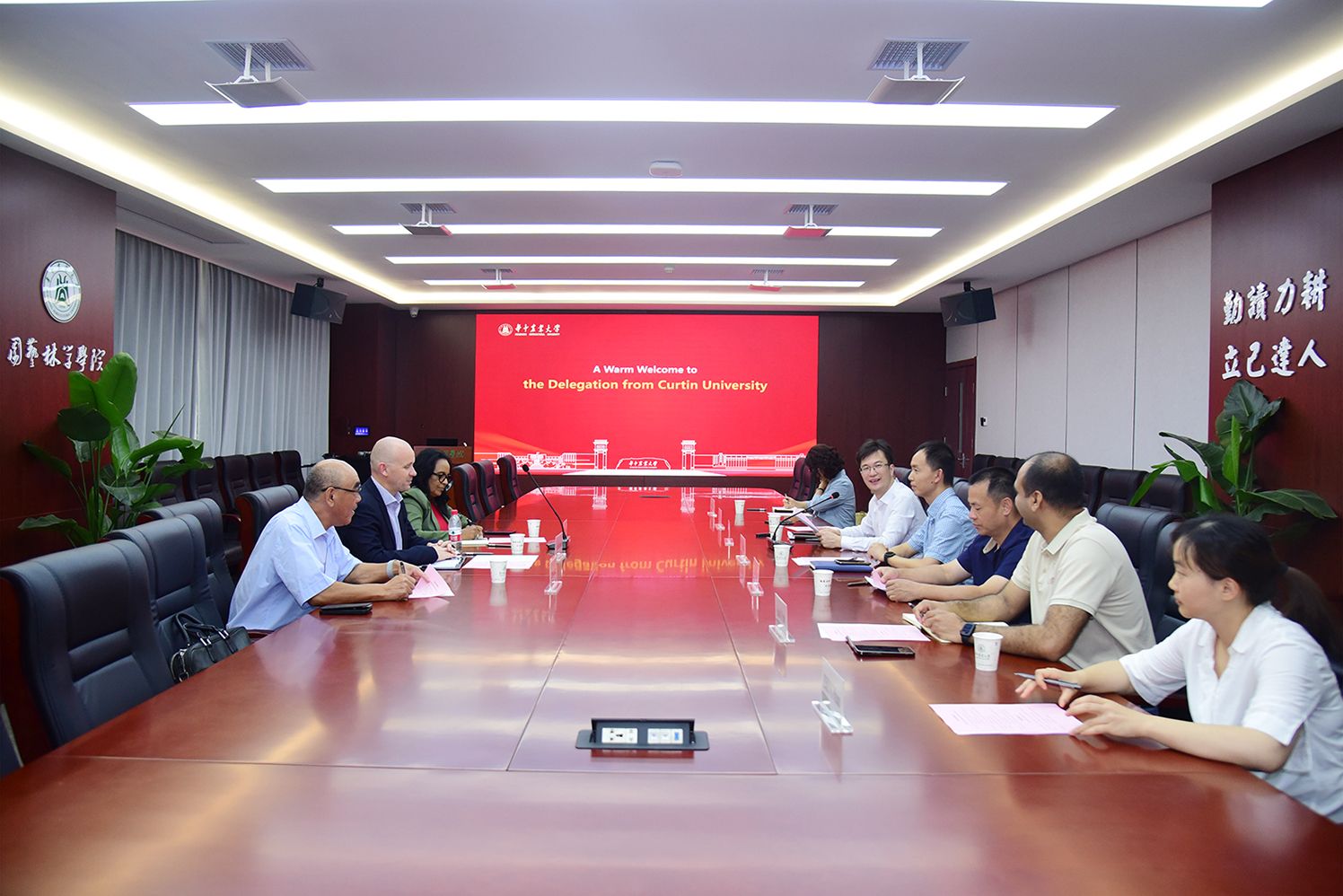 在讨论交流环节,双方重点探讨了本科衔接协议续签、短期学生交流项目开发及联合科研等议题。曹震表示,华中农大始终秉持开放办学理念,期待与科廷大学在人才培养和科技创新上形成长效合作机制。Chris Rawson教授对此积极回应,提出可通过师生互访、课程共建等方式进一步拓展合作空间。