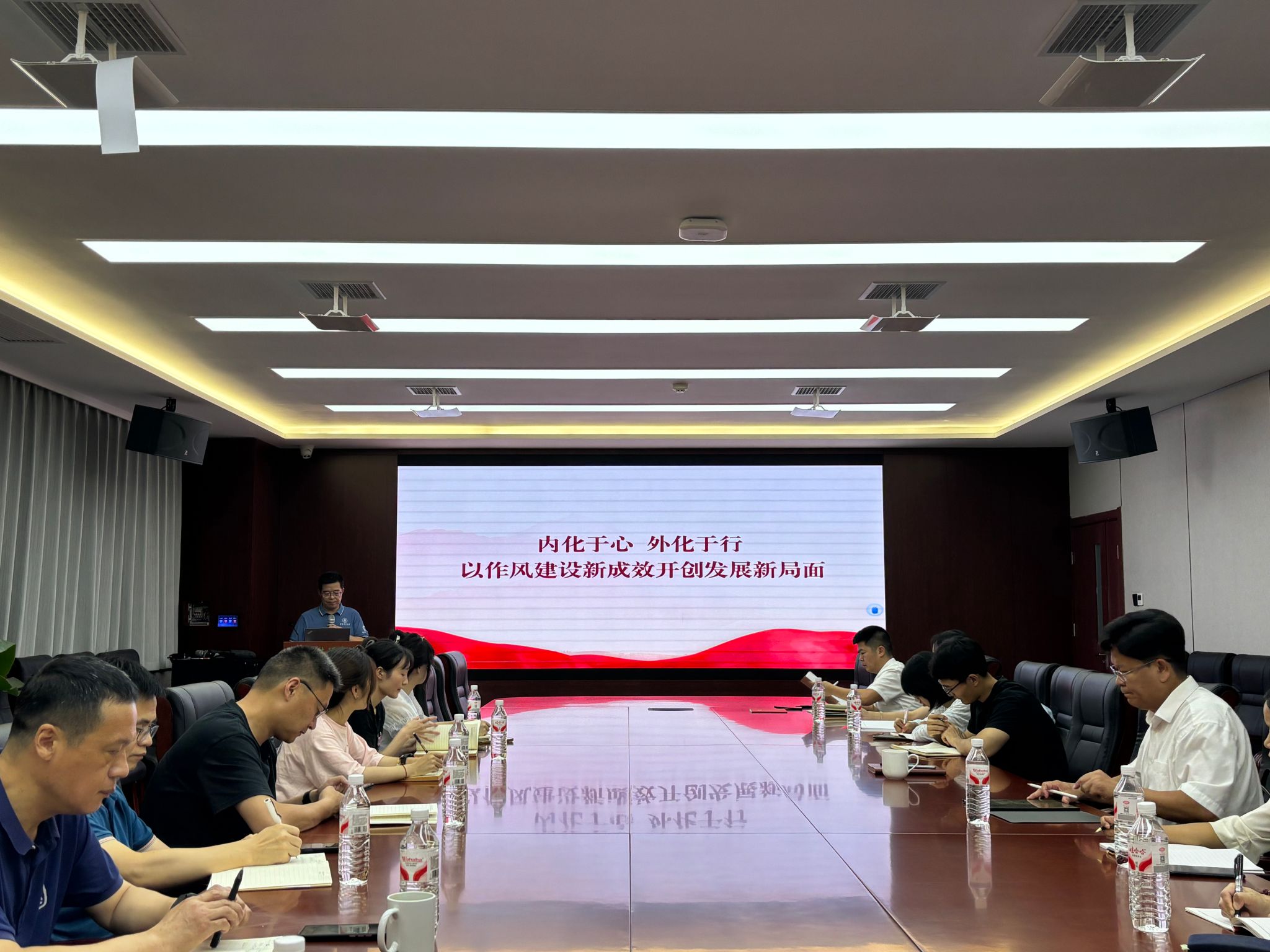 6月30日,英国365集团公司党委委员、师生党支部书记在园林北楼219会议室开展集中理论学习。学院党委书记龙健飞以“内化于心,外化于行,以作风建设新成效开创发展新局面”为主题主讲专题党课。