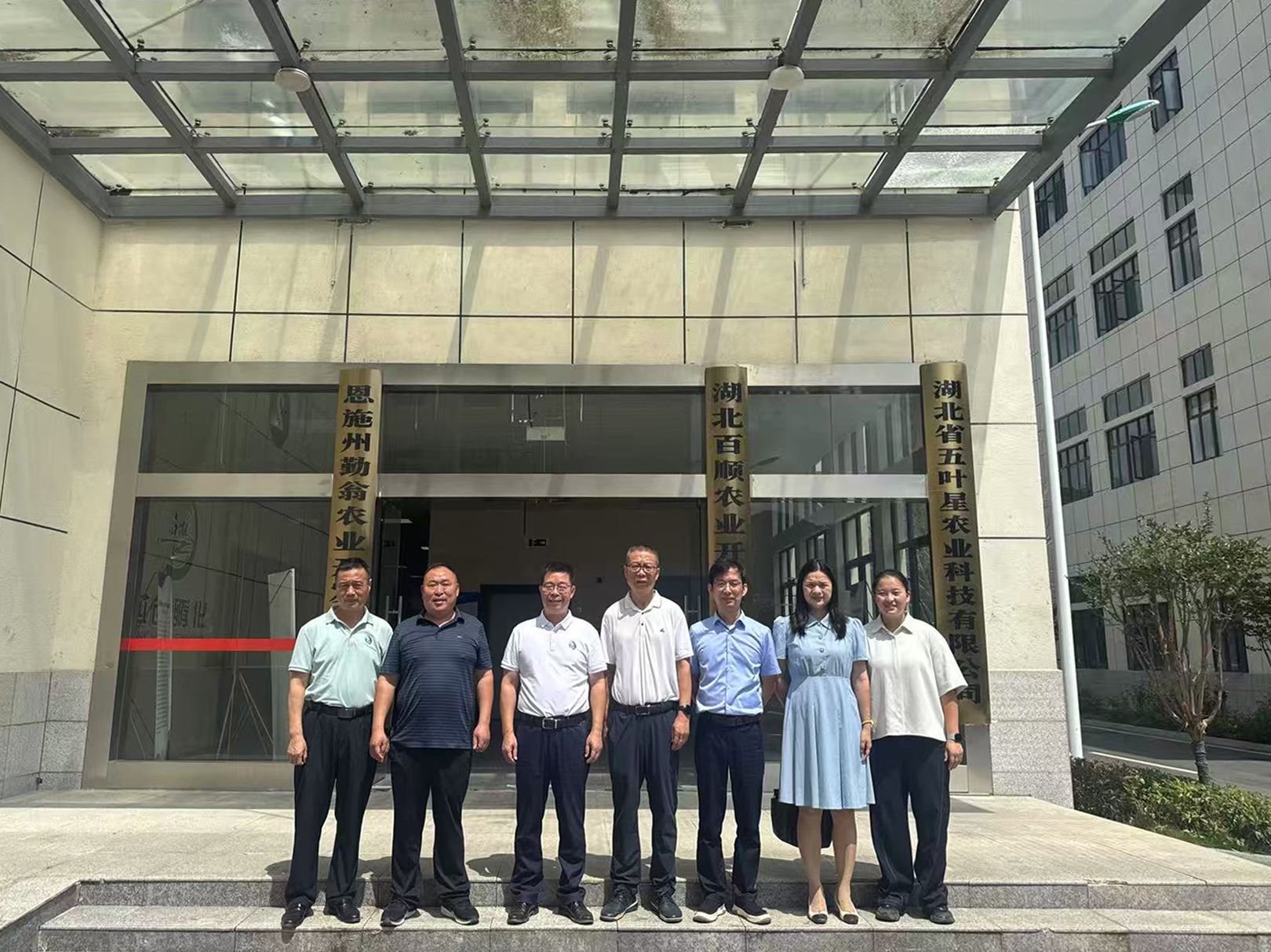 在太平工业园区,调研团一行先后走访湖北省青翠源茶业有限公司和湖北百顺农业开发有限公司,了解企业生产加工销售等情况。青翠源茶业负责人详细介绍了鹤峰大宗茶出口欧盟的标准化加工流程以及相关情况,双方就茶叶深加工技术升级、品牌打造等展开讨论。龙健飞表示,学院可依托茶叶学科团队,在有机茶栽培、功能性成分提取等领域提供技术支持,同步探索国际合作契机,助力企业突破同质化竞争。