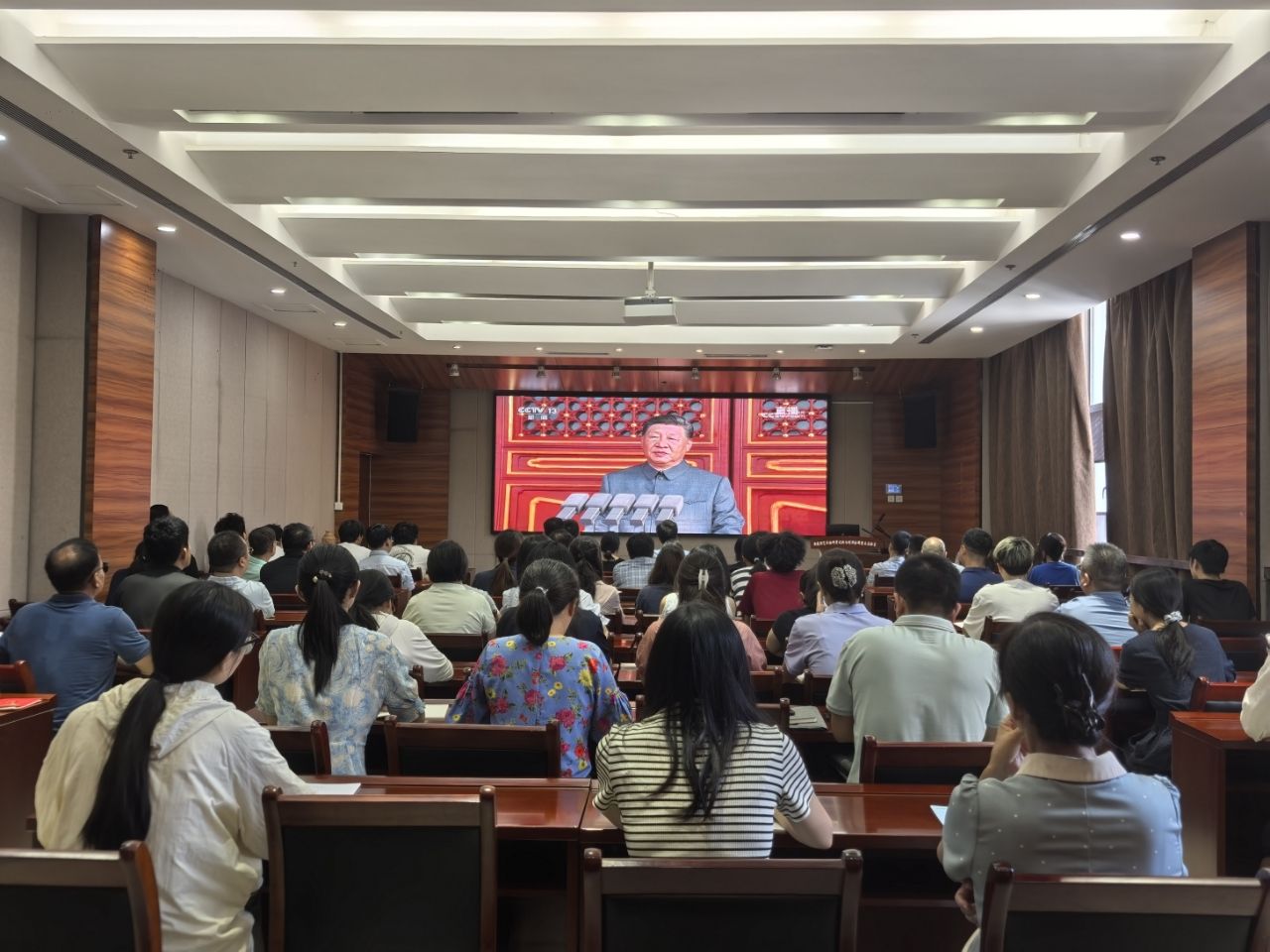 9月3日上午,红旗飘扬,军威雄壮。纪念中国人民抗日战争暨世界反法西斯战争胜利80周年阅兵式在北京天安门广场举行。我院组织师生集中收看阅兵式直播,共同上了一堂生动而深刻的爱国主义教育课。