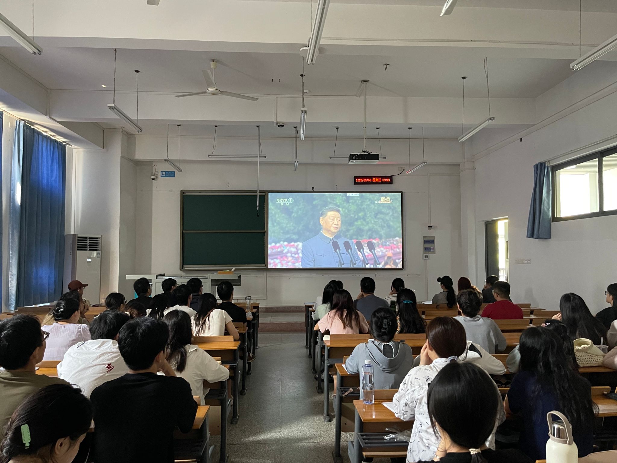 阅兵式上,习近平总书记发表了重要讲话,总书记的讲话引起了师生们的强烈共鸣,让大家深刻认识到抗战胜利的伟大意义,也更加坚定了传承抗战精神、为民族复兴而奋斗的决心。