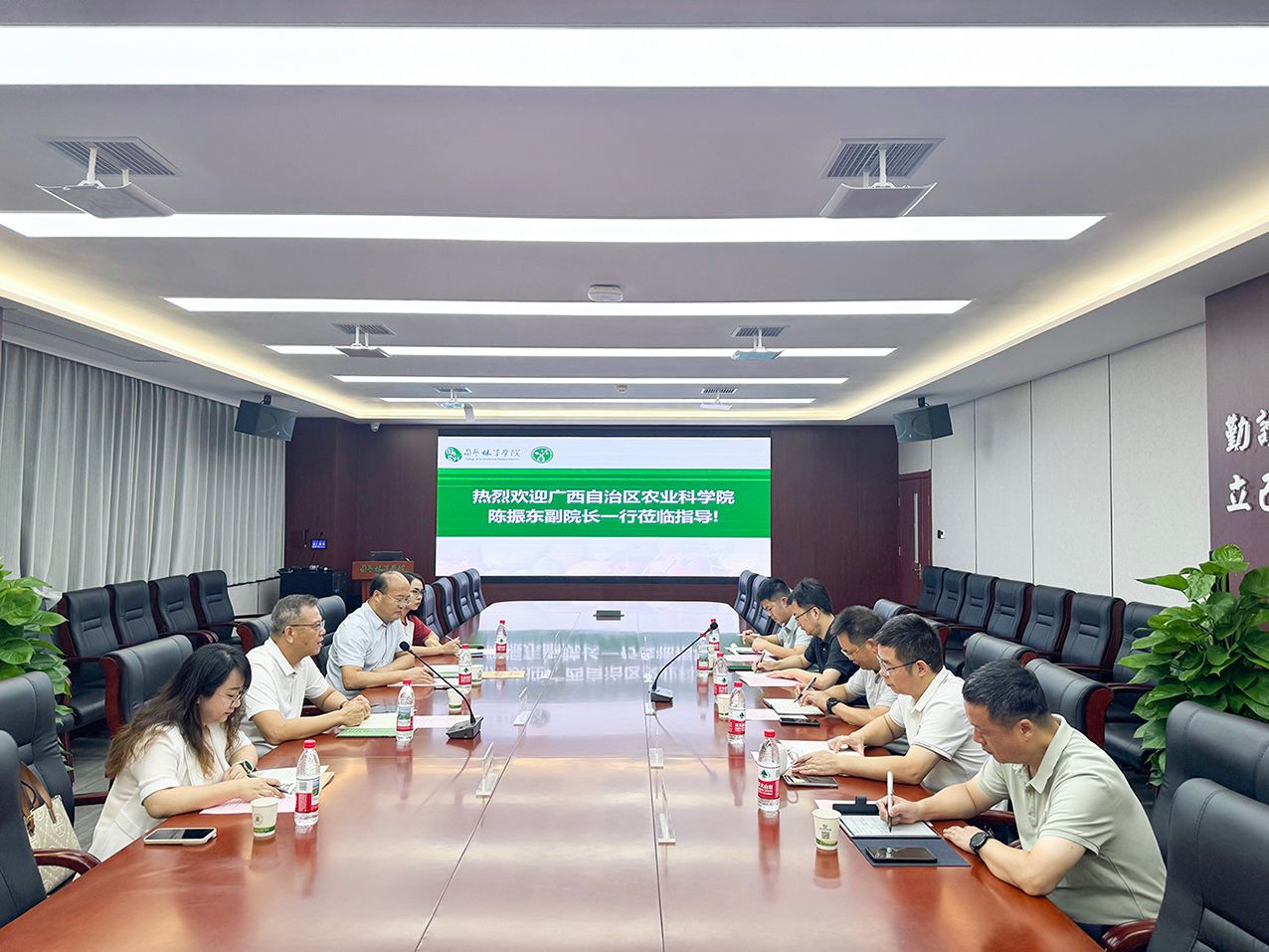 陈振东对我校长期以来支持广西果蔬产业发展表示了感谢,并介绍了广西农科院联合我校果蔬园艺作物种质创新与利用全国重点实验室等单位成功申报获批的“广西果蔬产业技术创新中心”有关情况。他表示,希望双方以创新中心为纽带,以项目和人才队伍建设为抓手,推动科研成果在广西落地转化,助力广西地方园艺产业高质量发展。