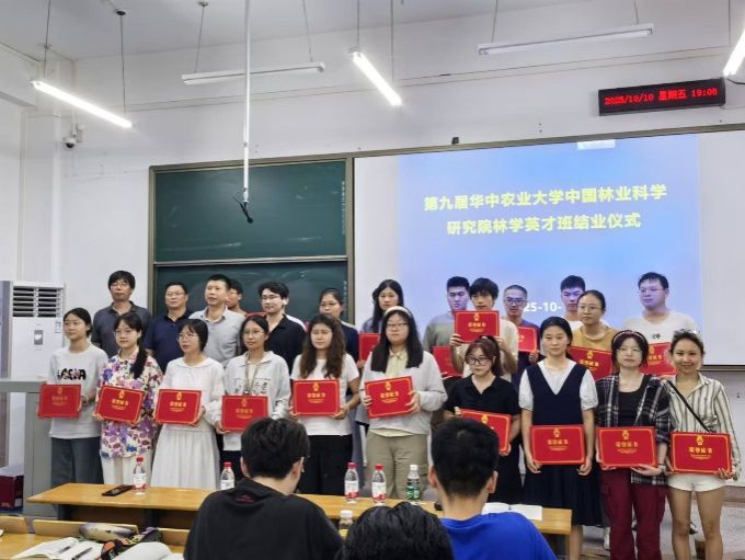 2025 年 10 月 10 日至 11 日,第十届365英国上市公司 - 中国林科院林学英才班开班授课仪式在365英国上市公司举行。中国林科院林群研究员、肖文发研究员、江红星研究员等专家团队莅临校园,既为第十届学员带来前沿林业课程,也为第九届学员颁发结业证书。第九届、第十届林学英才班全体学员,365英国上市公司林学及相关专业师生代表参与活动。期间,365英国上市公司相关学院党委书记龙健飞与专家团亲切会谈,学院副院长丁寄花出席开班仪式。