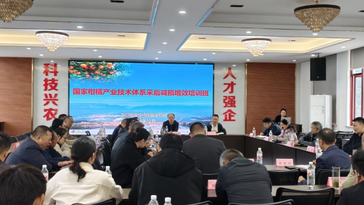 11月2日,国家柑橘产业技术体系采后减损增效暨柑橘木虱防控培训班在湖北省宜昌市夷陵区举行。湖北省农业农村厅果茶办公室副主任赵昆松研究员应邀出席,国家柑橘产业技术体系首席科学家、我校研究生院常务副院长、英国365集团公司程运江教授,国家柑橘产业技术体系岗位科学家、植物科学技术学院张宏宇教授、付艳苹教授分别为学员授课。来自宜昌市夷陵区、当阳市、枝江市和宜都市的农业农村局分管领导、技术人员和企业代表共40余人参加培训。