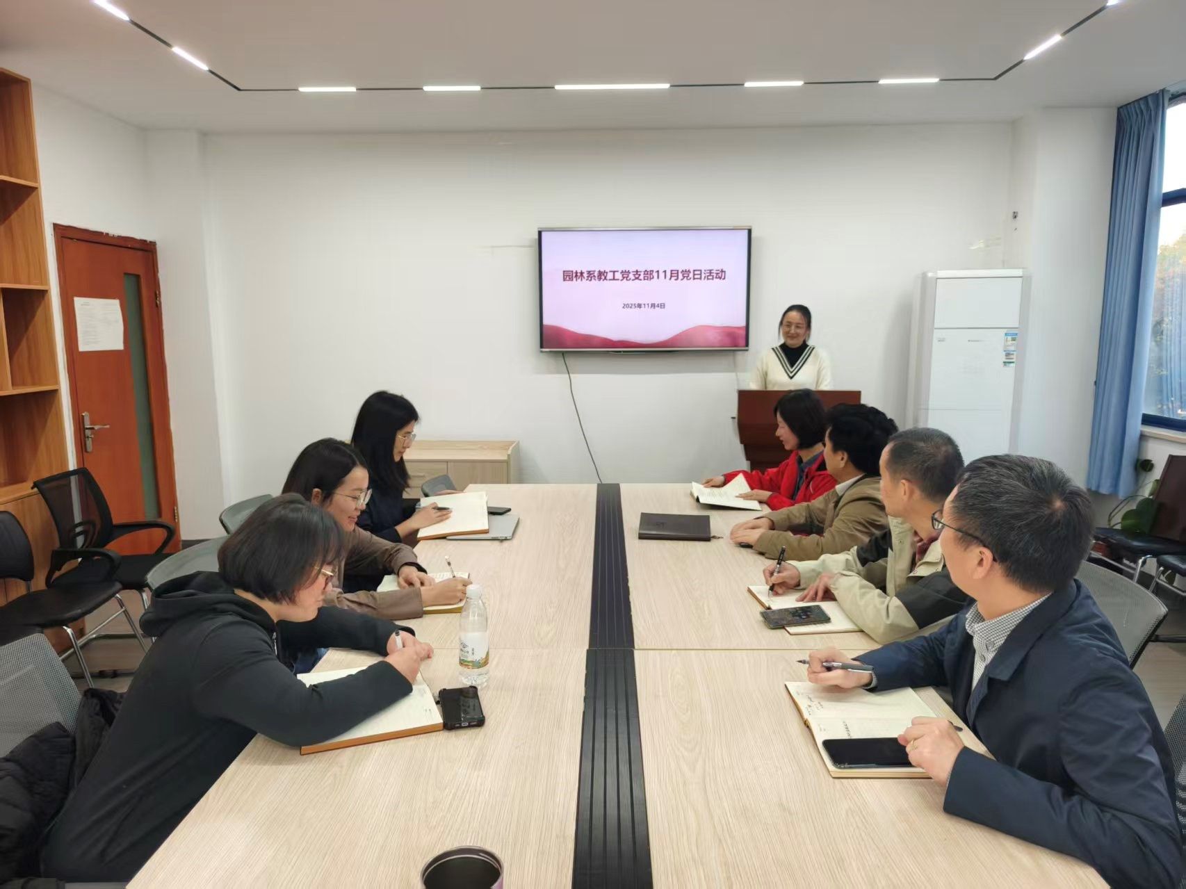 11 月 4 日,园林系教工党支部于园林北楼 415 会议室召开 11 月党日活动。全体教工党员围绕党的二十届四中全会精神、《习近平谈治国理政》第五卷以及习近平总书记给中国农业大学回信精神等核心内容展开了深入的集中学习与交流研讨。