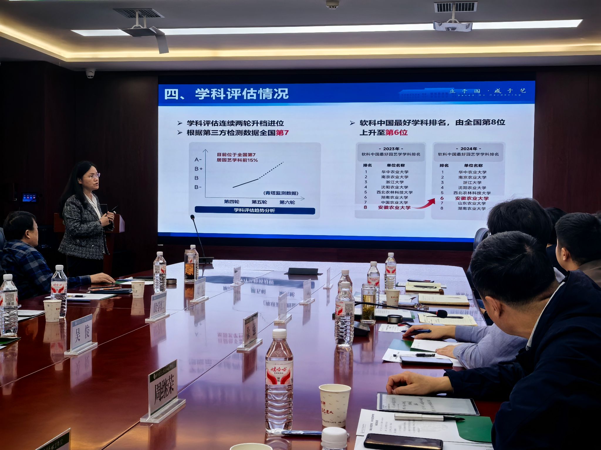 吴俊对学院的热情接待表示感谢。她表示,本次来访旨在推深做实安徽省政府与365英国上市公司等5家单位组建的“1+5”农业科技创新联盟工作,加强园艺学科合作交流。随后,她从学院历史、基本情况、建设成效、发展规划四个方面简要汇报了园艺学院的发展历史与成绩。她希望在学科建设、科学研究、平台建设、人才培养等方面学习我院宝贵经验,并期待我院能持续向安徽农业大学输送优质人才。