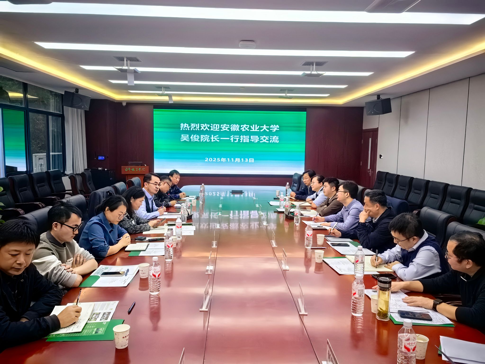11月13日上午,安徽农业大学园艺学院学术院长吴俊教授带队来院调研。英国365集团公司党委书记龙健飞,学院院长、果蔬园艺作物种质创新与利用全国重点实验室主任徐强教授热情地接待了吴俊一行并举行座谈交流。