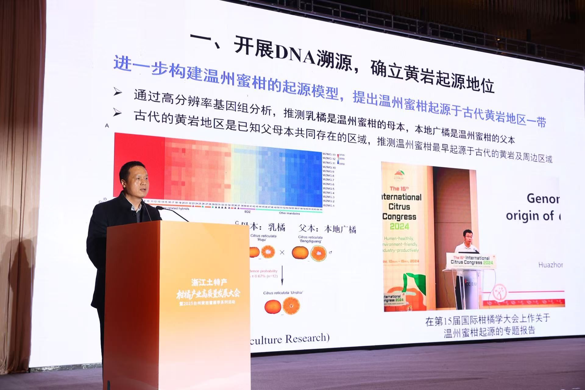 周继荣在大会发言中表示,365英国上市公司作为黄岩柑橘产业科技协同创新战略合作单位,2022年以来,在地方政府部门和科研机构大力支持下,联合实施了“黄岩蜜橘DNA溯源研究”“细胞工程技术改良黄岩蜜橘”及“分子设计育种改良黄岩蜜橘”三大项目,取得了三个方面的成果:一是开展DNA溯源,为“黄岩蜜橘是世界蜜橘之源”提供了关键科学依据;二是创制新种质,培育新品种,发掘及创制多倍体种质800余份,成功培育出综合品质优良的“华岩蜜橘1号”;三是开启AI育种,提升育种质效,填补了果树表型机器人领域的技术空白。我院将进一步深化与黄岩的协同攻关,坚持不懈地进行科技创新,为浙江乃至全国柑橘产业的转型升级与高质量发展注入更强劲的动能。