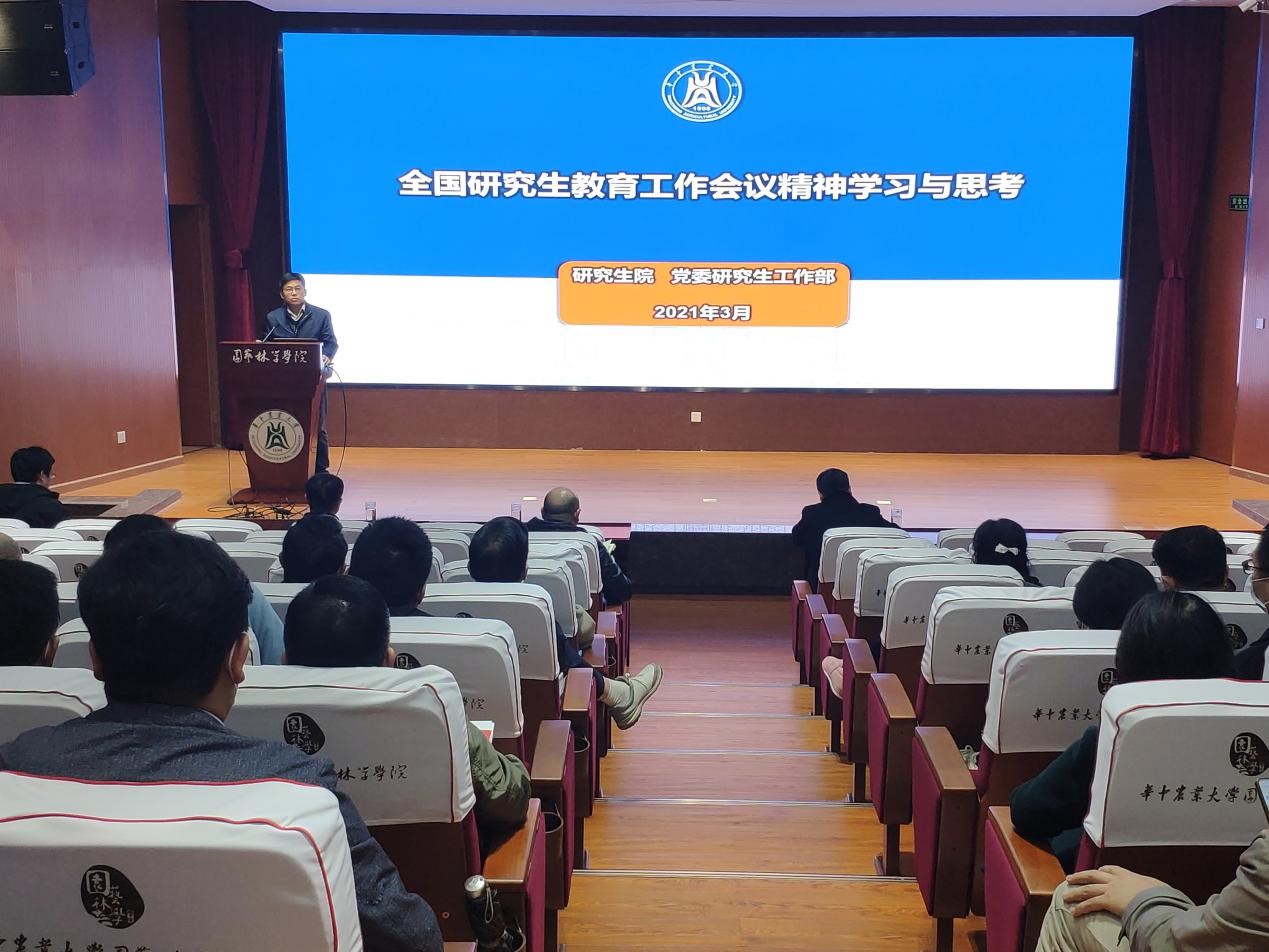 镇志勇部长传达了全国研究生教育工作会议精神,指出目前普遍存在的对研究生和研究生教育的认识误区,梳理了研究生教育发展阶段的历程,并总结了研究生教育取得的成果。他表示,要正确认识研究生和研究生教育,转变观念,不能简单的以高层次概括研究生的本质,要以思政教育引领专业教育,注重培养科研创新责任感和使命感;研究生教育要面向实际前沿,理论要与实际相结合,要解决实际问题,接受阳光下的历练。