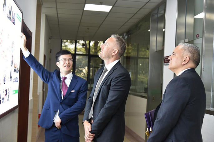 观看实验室中新双边合作基地文化墙(供图 程玉华)
