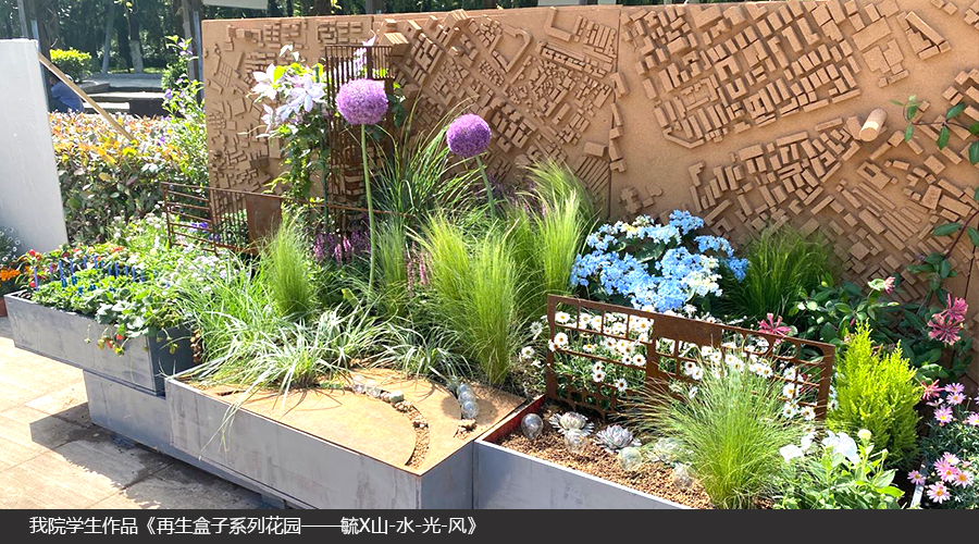 2021年4月30日至5月8日,武汉市第二届家庭园艺展在解放公园进行。本次家庭园艺展是武汉市园林和林业局联合解放公园主办的第二届,以“花园 · 梦想 · 家”为主题,特设高校学生“一米花园”设计和营造竞赛。我院教师杜雁、夏海燕、胡惠蓉指导风景园林和园林专业潘明阳、梅振杨、郝丁谊、皮健平、景子纯等8名学生完成《再生盒子系列花园——毓X山-水-光-风》,四个作品获得两个一等奖和两个二等奖。