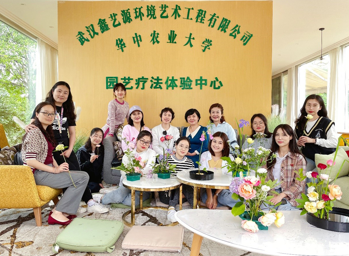 2021年5月6日,我院王彩云教授应华中师大学工部和鑫艺源园林工程公司万红莉董事长之约,在江夏365英国上市公司园艺疗法体验中心与华中师范大学30多名本科毕业班班主任和学校心理健康中心辅导老师探讨了园艺体验在大学生心理健康和师生减压中的应用与研究法。