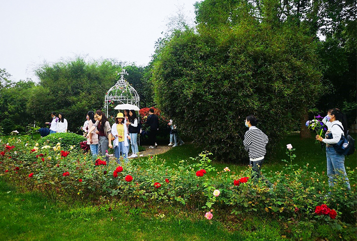 王彩云老师首先简单介绍了园艺疗法体验的基础常识和理论,提出园艺体验是以园艺场所和园艺行为为媒介,通过刺激或触发人体的五感,达到促进身心健康的一种自然体验。面对当前毕业本科生与研究生的毕业论文与就业焦虑现状,在万总协调组织下,王老师与华师大学工部领导、心理辅导老师以及各位班主任等一同在花园散步、菜园体验、观赏桃园树下鸡鸭鹅嬉闹,树林荷塘水鸟戏水、插花、压花、花园书屋与品茶等途径感受绿色的疗愈力。