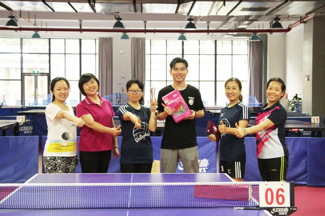 对羽毛球、排球、游泳都很擅长的“全能选手”袁芳亭老师,打乒乓球已四年有余。作为冠军队的主力,袁老师说:“运动使人快乐,今天和同学们一起打球我非常开心,也希望在读和即将毕业的同学们能多参加文体活动,找到自己的兴趣所在,并将其作为生活的调剂。”