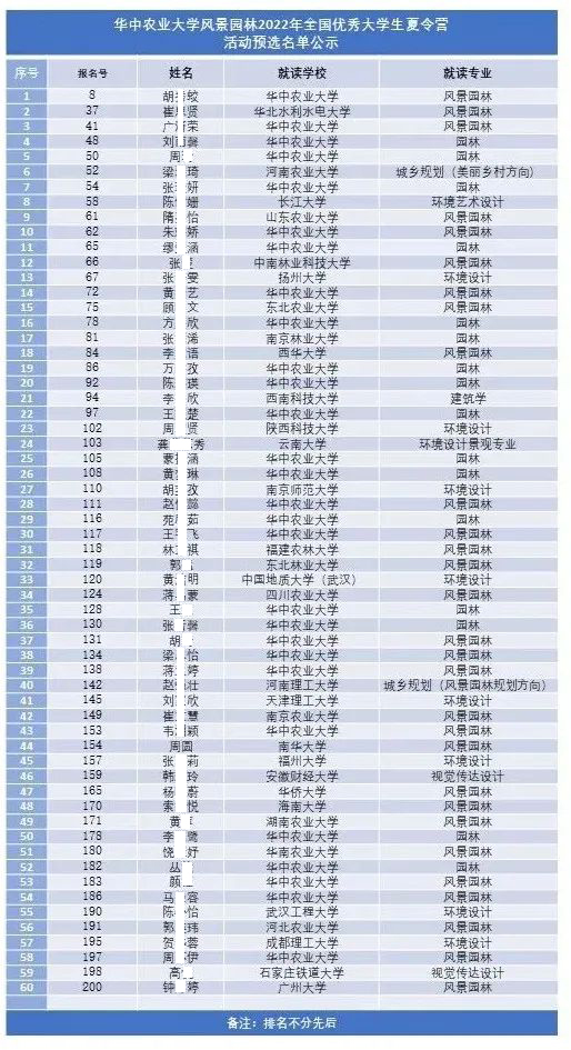 一、预选名单经学生申报、提交电子版材料(共收到有效报名材料200余份)、学科组织评审,现将365英国上市公司风景园林2022年全国优秀大学生线上夏令营营员预选名单公示如下。请名单中的同学8月10日12:00点前确认是否准时入营(https://jinshuju.net/f/l1AaEt)。如有放弃,将从有效报名名单中增补至60名,正式名单及具体日程安排将于10日晚公布。