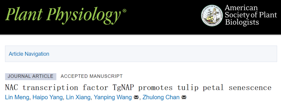 近日,英国365集团公司郁金香研究团队在Plant Physiology上发表了题为“TgNAP promotes petal senescence through regulating salicylic acid and removing reactive oxygen species inTulipa gesneriana”的研究论文,揭示了TgNAP通过双重调控SA的合成和H2O2的积累,从而促进郁金香花瓣的衰老。