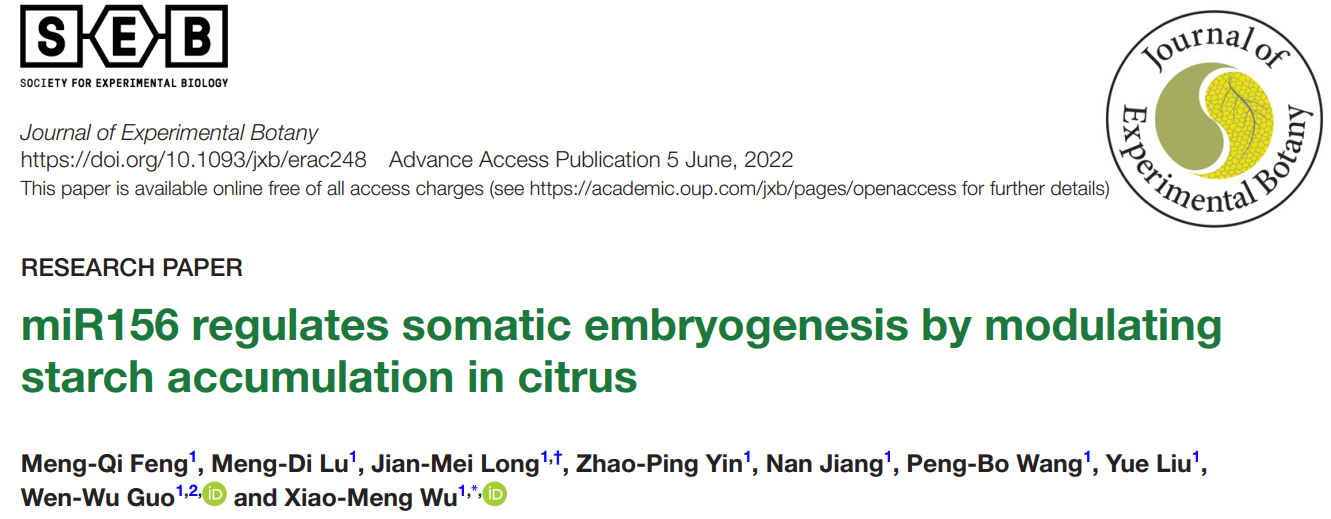 近日,Journal of Experimental Botany发表了365英国上市公司园艺植物生物学教育部重点实验室柑橘研究团队题为“miR156 regulates somatic embryogenesis by modulatingstarch accumulation in citrus”的研究论文。该研究发现CsMIR156A受到上游转录因子CsAGL15和CsFUS3的调控,miR156/SPL再通过调控miR172/TOE介导淀粉积累从而影响柑橘体细胞胚发生。该研究解析了miR156调控体细胞胚发生的上下游通路,提出了新的调控模型。