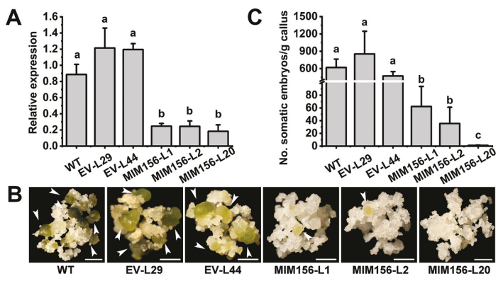 图1抑制csi-miR156表达显著降低柑橘体细胞胚发生