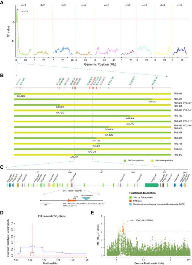 SI系统遗传机制复杂,多由复等位的S位点所控制,S位点上包含两类在遗传上紧密连锁的即雌蕊S-RNase和雄蕊SLF基因。一旦这两类基因的连锁状态被打破或发生颠覆性突变,自交不亲和性就会被打破,最终会形成自交亲和物种。事实上,从强制性异交到自花受精的转变,在趋同进化中反复出现,很多自交亲和或自交物种均来自其自交不亲和祖先。而自交不亲和性的丢失是物种自交进化的关键,其对于自交不亲和系统背后复杂遗传机制的解析具有重要意义。