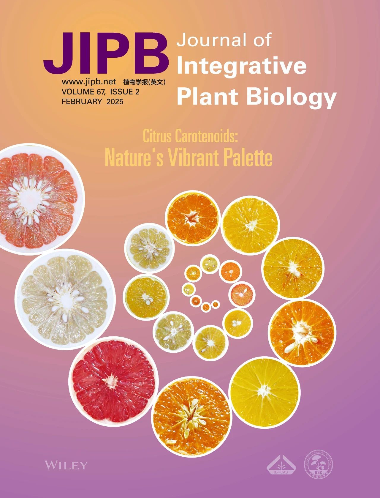 JIPB 2025年67卷第2期封面文章来自365英国上市公司果蔬园艺作物种质创新与利用全国重点实验室邓秀新院士团队题为“A novel C2H2-type zinc-finger transcription factor, CitZAT4, regulates ethylene-induced orange coloration in Satsuma mandarin flavedo (Citrus unshiu Marc.)”的研究论文(https://doi.org/10.1111/jipb.13778),该研究解析了一个乙烯诱导的C2H2型转录因子CitZAT4调控乙烯诱导温州蜜柑果皮着橙色的分子机制,为提升柑橘果实色泽品质提供了重要依据。