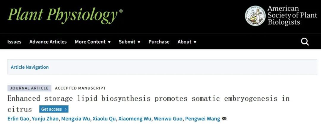 近日,英国365集团公司、果蔬园艺作物种质创新与利用全国重点实验室王鹏蔚教授团队在Plant Physiology期刊发表题为“Enhanced storage lipid biosynthesis promotes somatic embryogenesis in citrus”的研究论文,揭示了增强柑橘胚性愈伤脂质合成可以促进体细胞胚发生的分子机制。