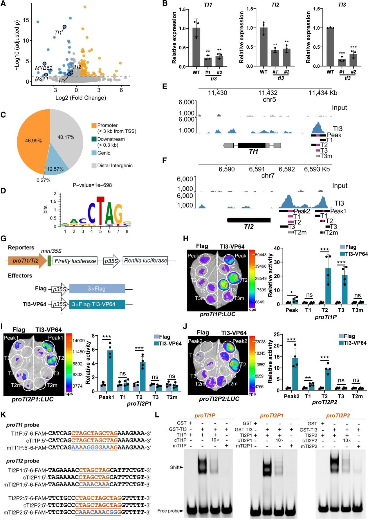 三、TI3 通过结合 CTAG 基序直接激活枝刺身份基因表达