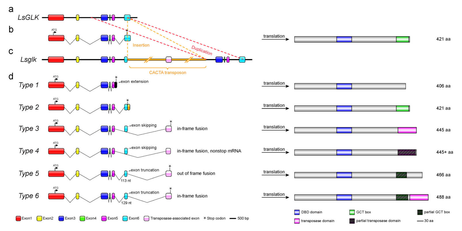 CACTA转座子插入LsGLK基因并导致可变剪接