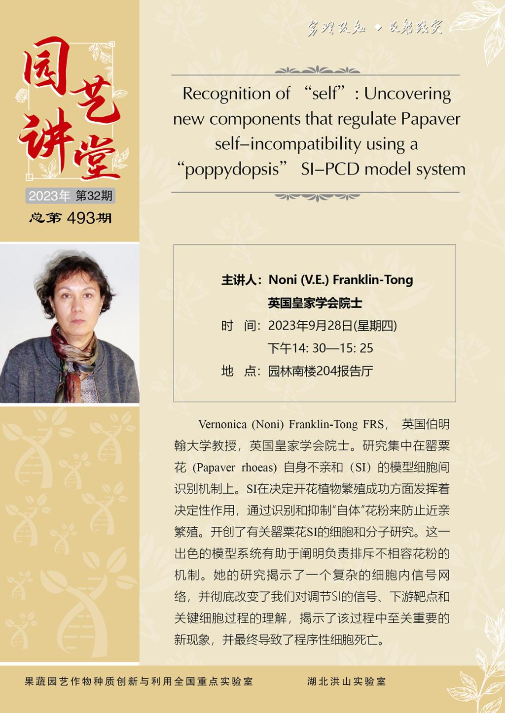 【园艺讲堂】Recognition of “self”: Uncovering new components that regulate Papaver self-incompatibility using a “poppydopsis” SI-PCD model system
