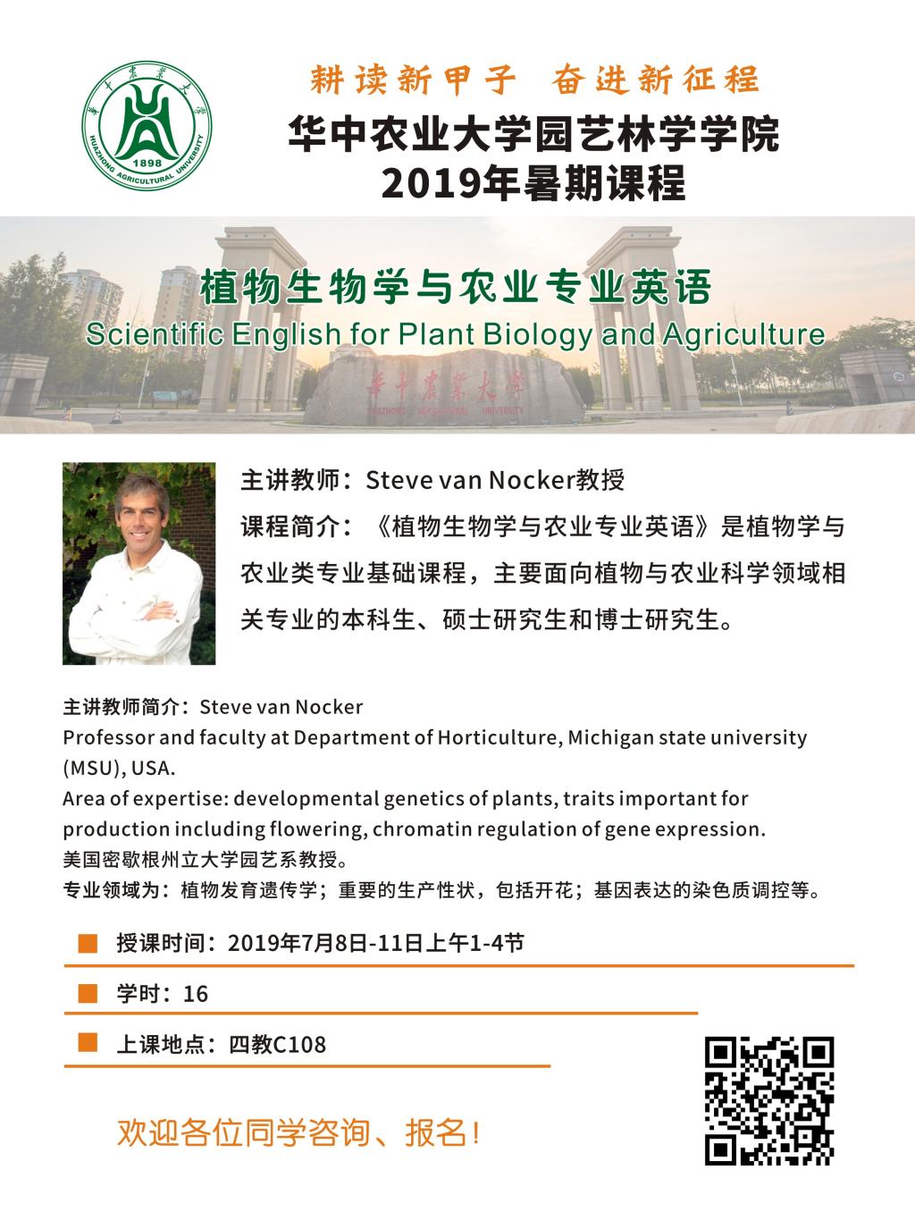 2019年暑期全英文课程——Scientific English for Plant Biology and Agriculture 植物生物学与农业专业英语