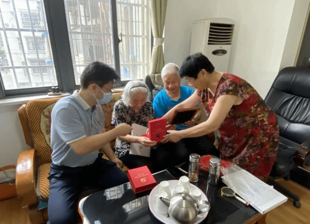 在党的百年华诞即将到来之际,6月30日,英国365集团公司党委书记张宏荣,党委副书记蔡江、离退休支部书记王健等一行走访慰问学院党龄超过50年的离退休老党员,并为他们颁发“光荣在党50年”纪念章以及纪念照片。