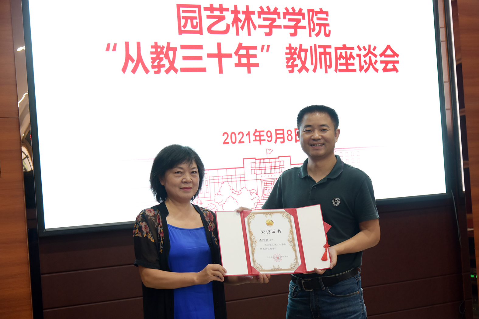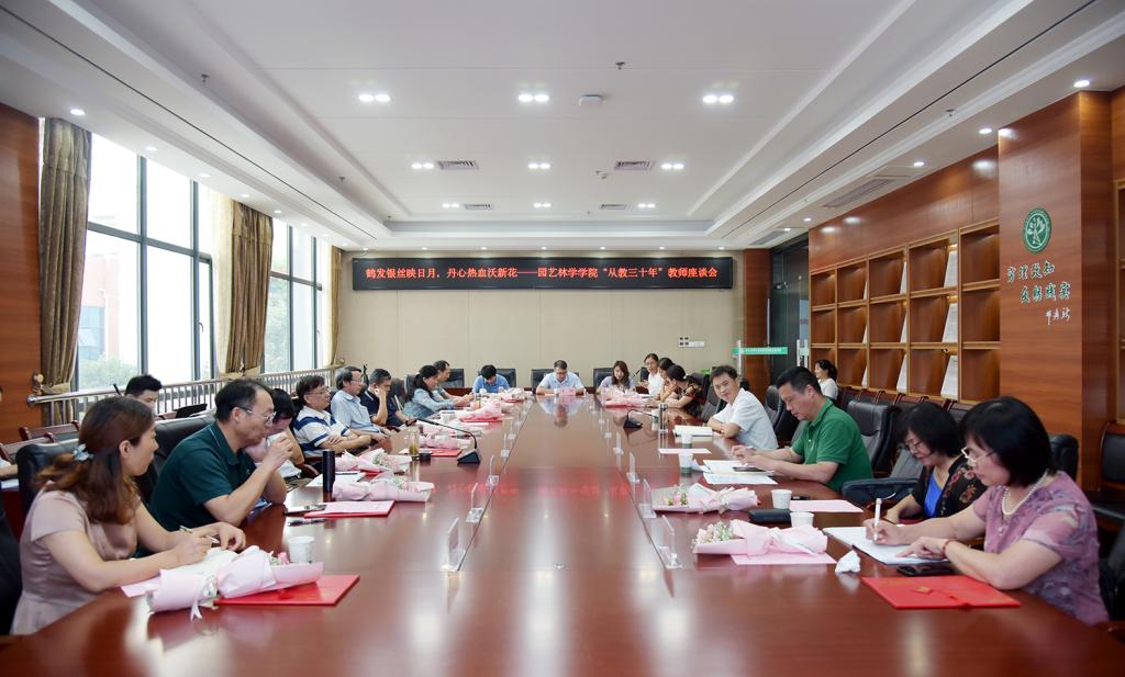 9月8日下午,学院在园林南楼206会议室举行“从教三十年”教师座谈会,会议由学院副院长周继荣主持。学院领导班子成员、党委委员、从教30年教师代表、青年教师代表、博士后代表等40余人参加座谈会。