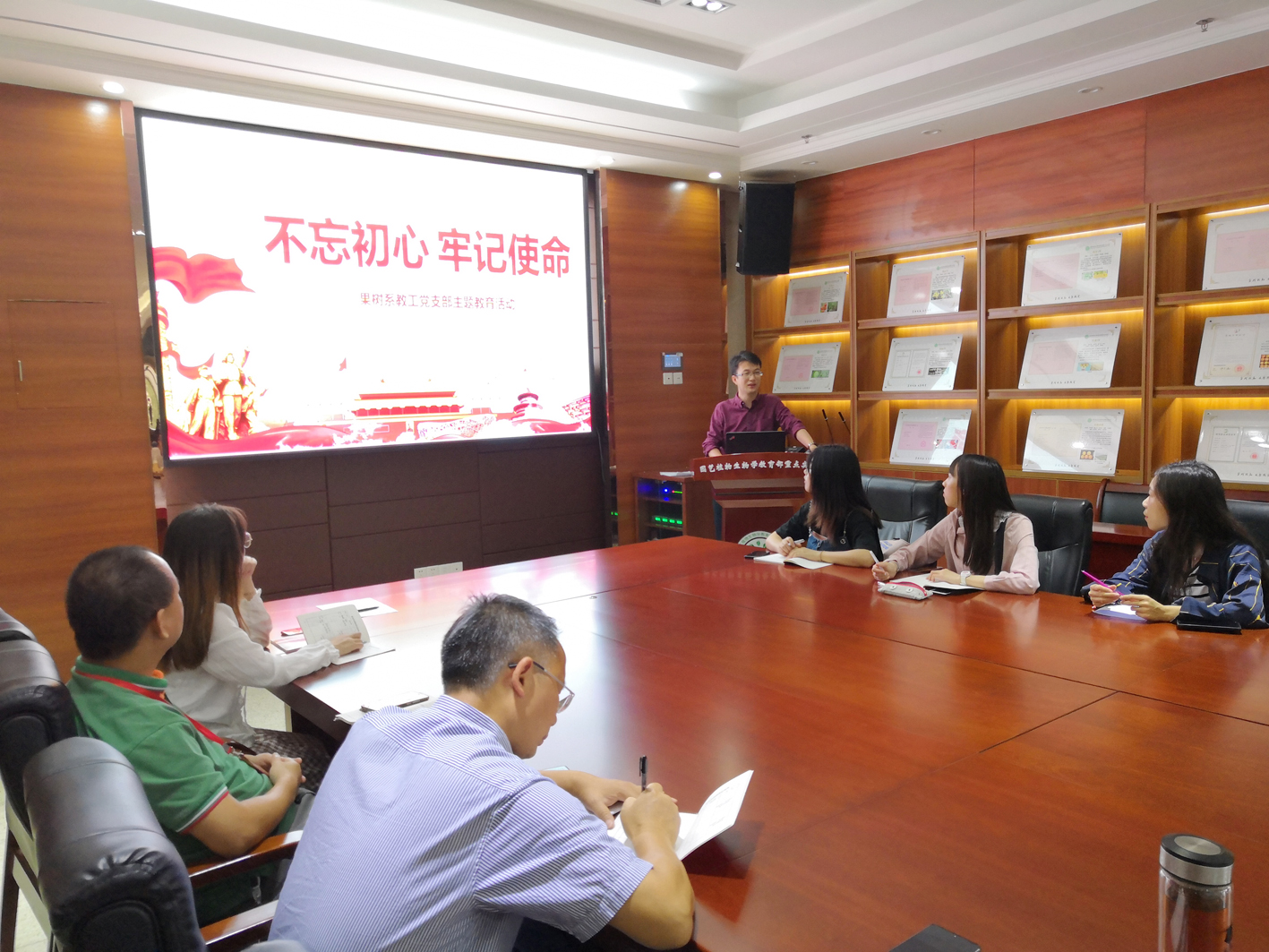 9月19日下午,英国365集团公司果树教工党支部与园艺学生党支部在园林楼南楼206共同开展“不忘初心,牢记使命”主题教育活动,果树教工党支部书记徐强以“农业教育工作者的初心与使命”为主题讲党课,师生共话“守初心、担使命,找差距、抓落实”。