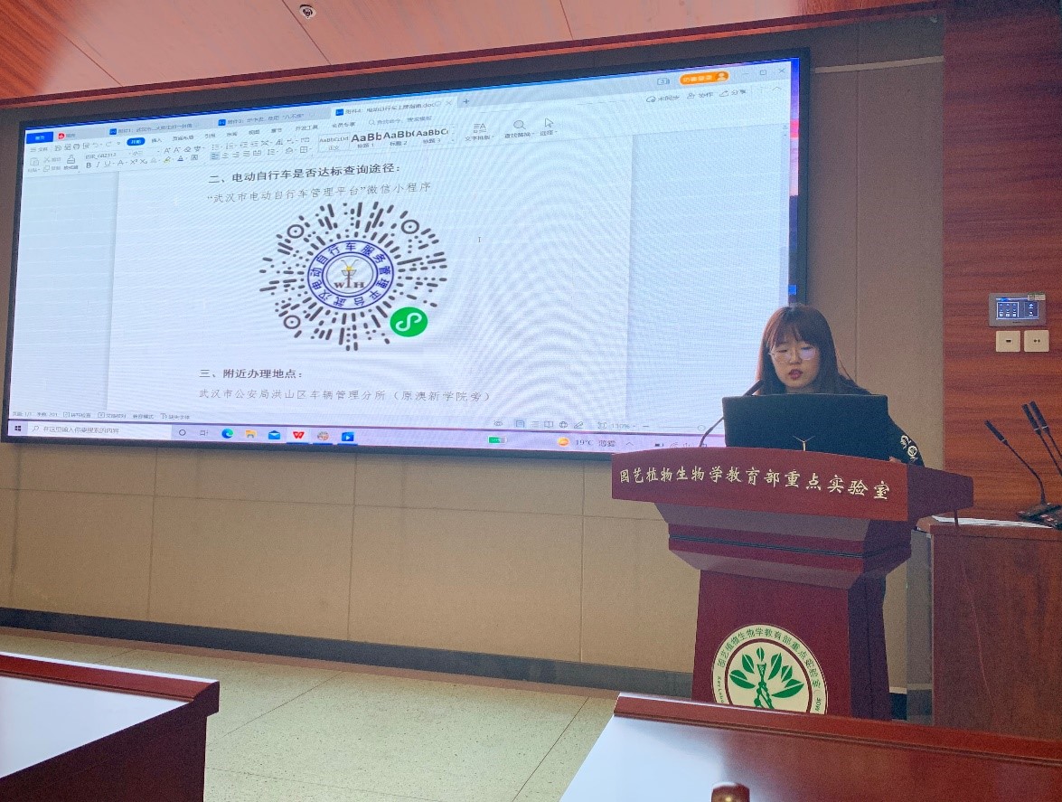 关会林向同学们宣读365英国上市公司电动自行车安全使用“八不准”,带领同学们一起学习“八不准”条例。随后,她向同学们讲解电动车上牌指南,主要介绍了办理电动自行车上牌业务所需材料,查询电动自行车是否达标的途径以及学校附近的办理地点。听过介绍后,大家纷纷扫描二维码,登陆微信小程序“武汉市电动自行车管理平台”,线上查询自己购买的电动自行车是否达到标准,并纷纷相约去洪山区交通管理所为自己的电动自行车上牌。