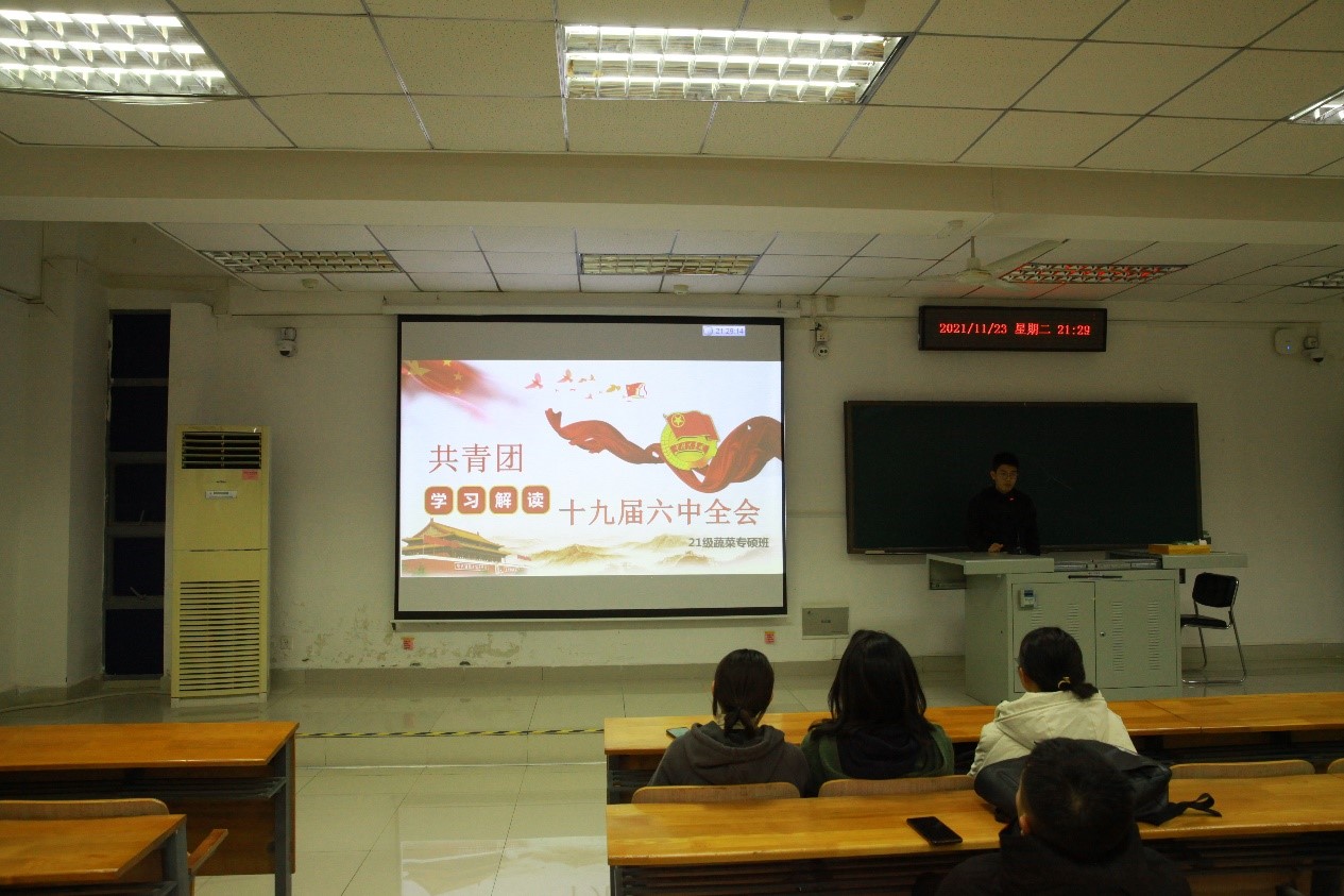 为深入贯彻学习党的十九届六中全会的重要精神,20211123日晚, 21级蔬菜专硕班在三教A305教室召开学习党的十九届六中全会精神主题班会。